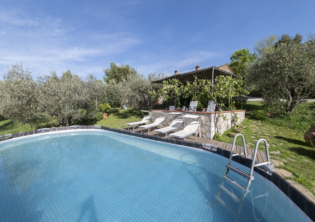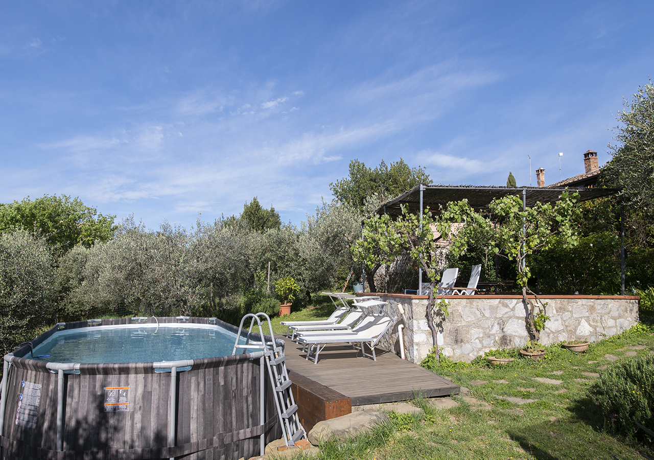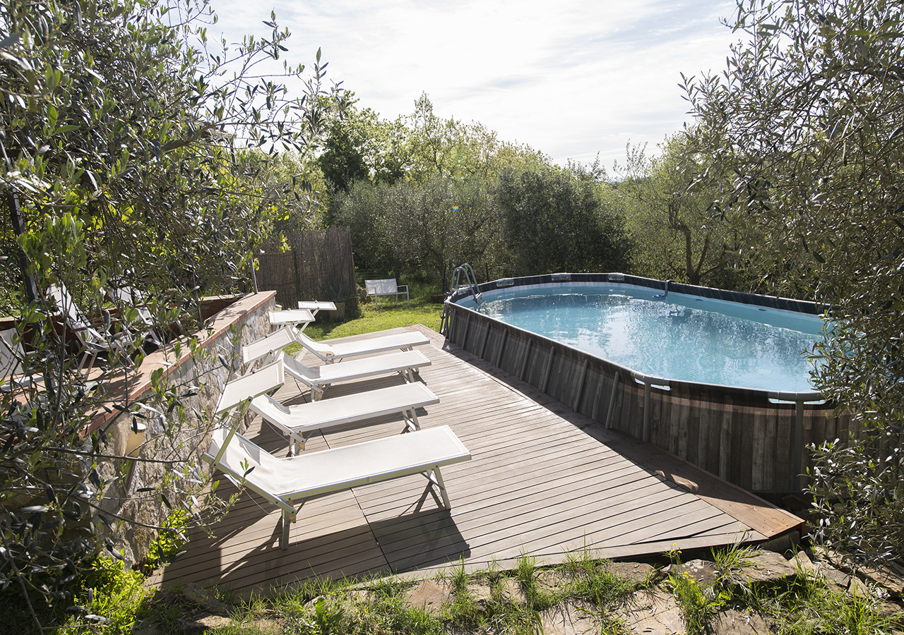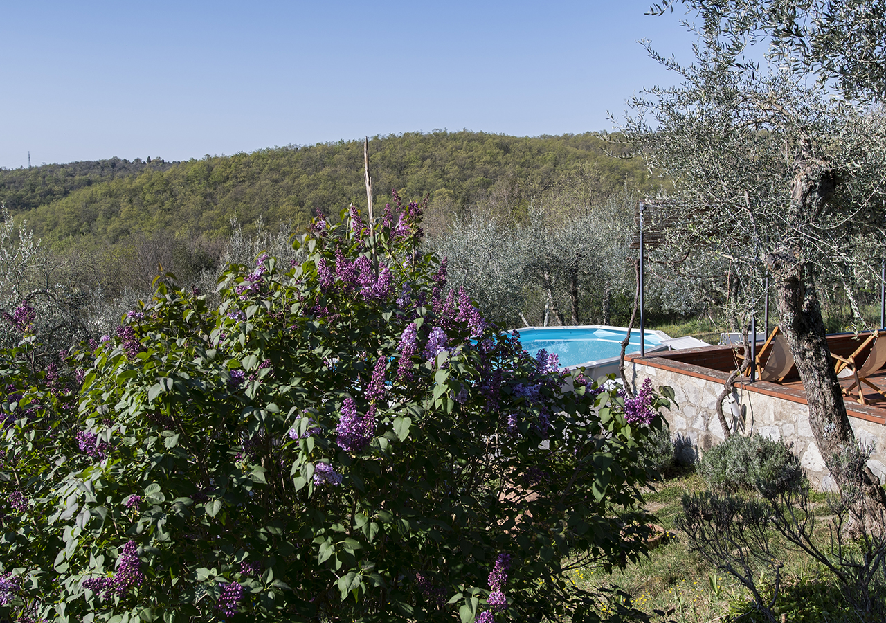 Dal solarium accanto alla piscina in mezzo agli olivi, si puo’ ammirare il panorama sulle colline Senesi e sul Borgo Medioevale di Rigomagno….tutto questo caratterizza la vacanza ideale per coppie o famiglie che vogliono rilassarsi.