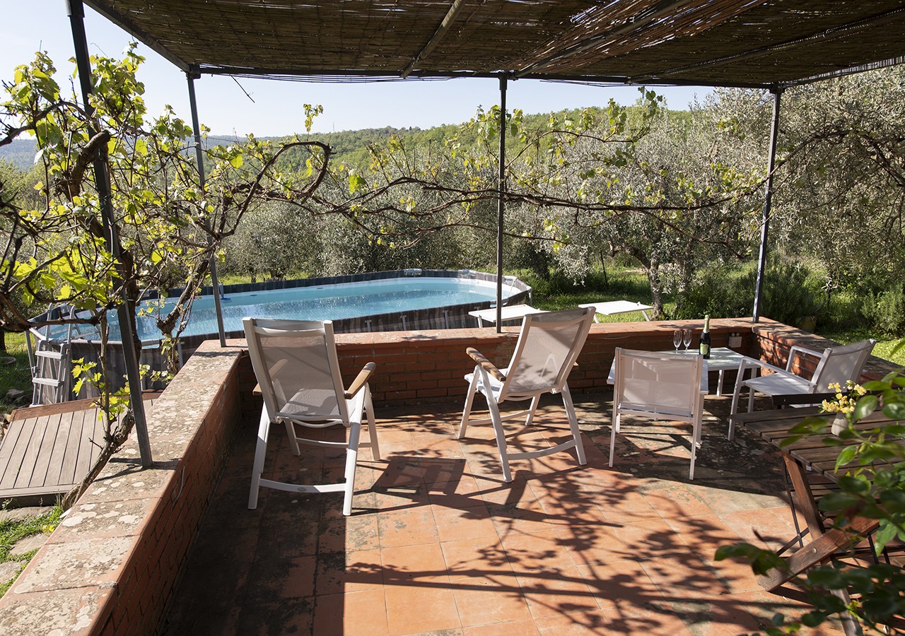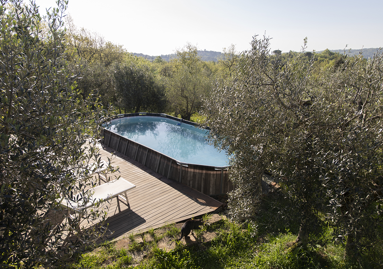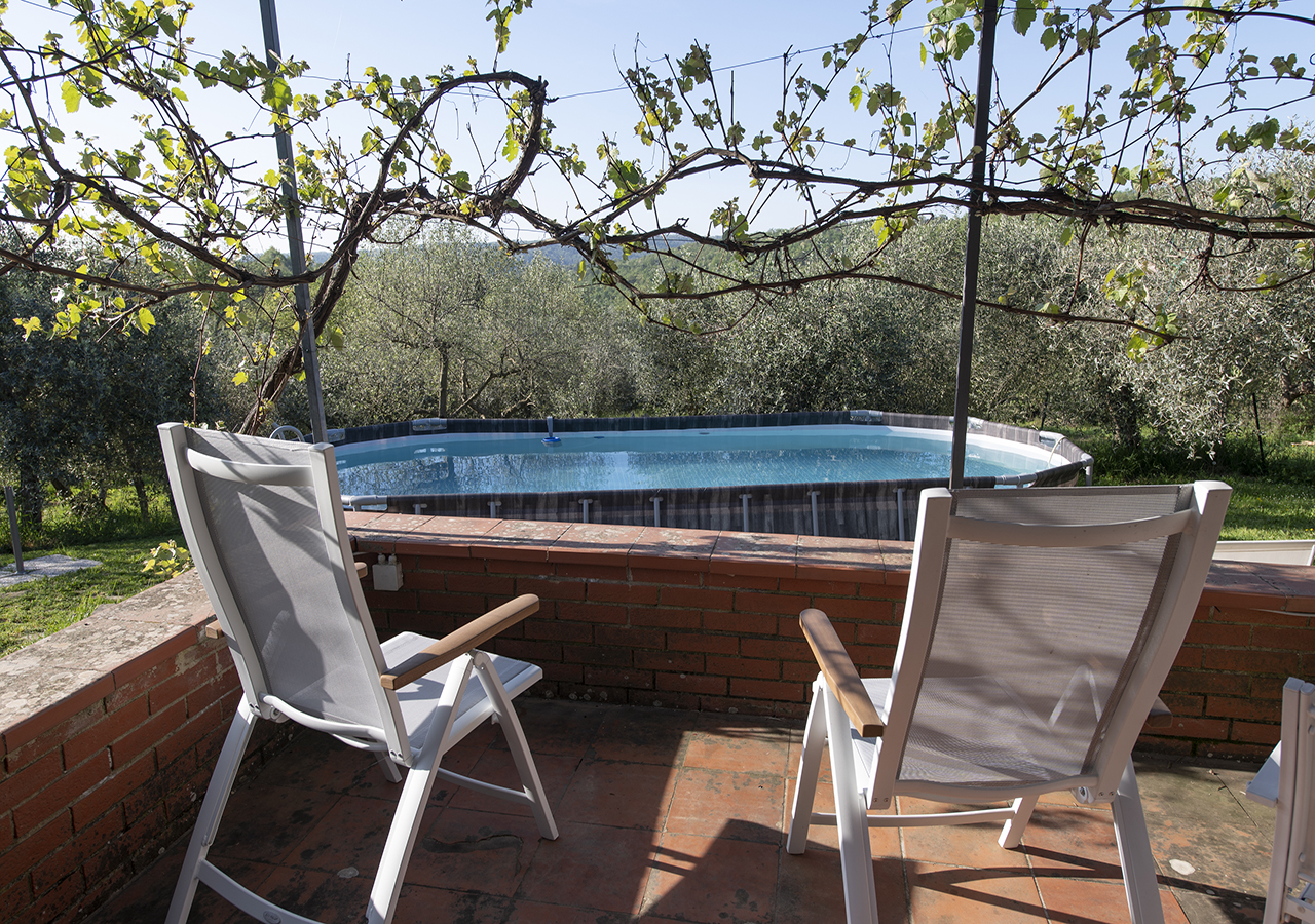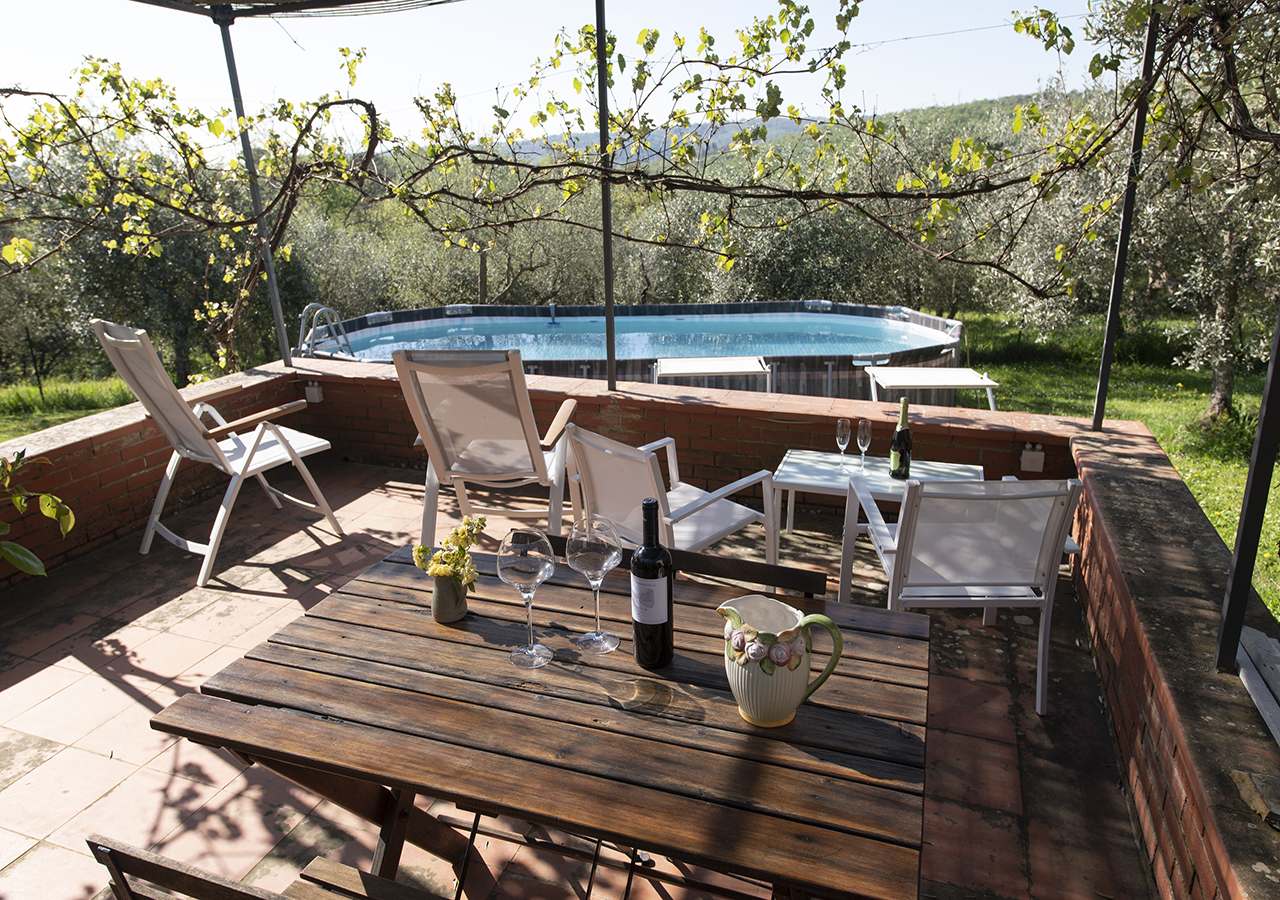 Dal solarium accanto alla piscina in mezzo agli olivi, si puo’ ammirare il panorama sulle colline Senesi e sul Borgo Medioevale di Rigomagno….tutto questo caratterizza la vacanza ideale per coppie o famiglie che vogliono rilassarsi.