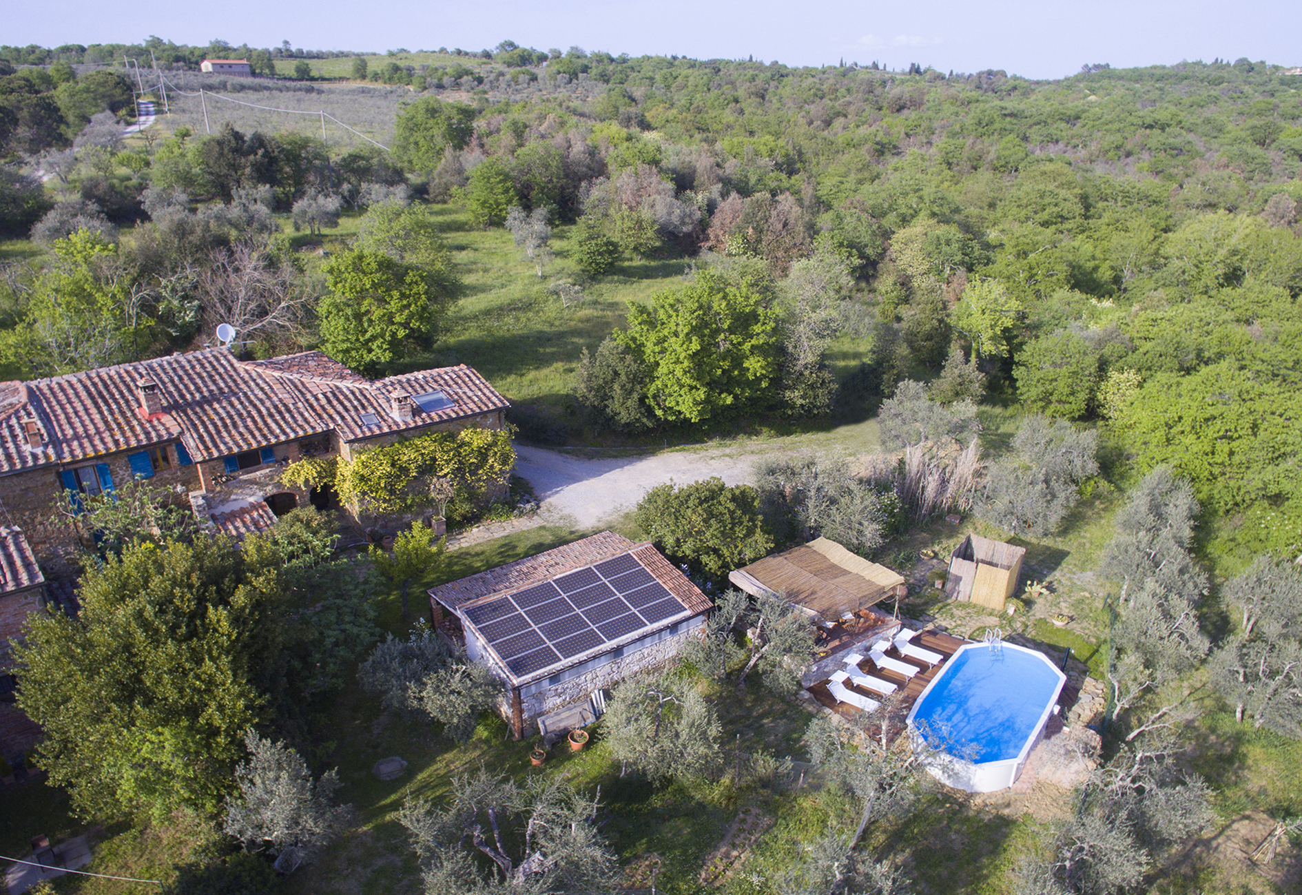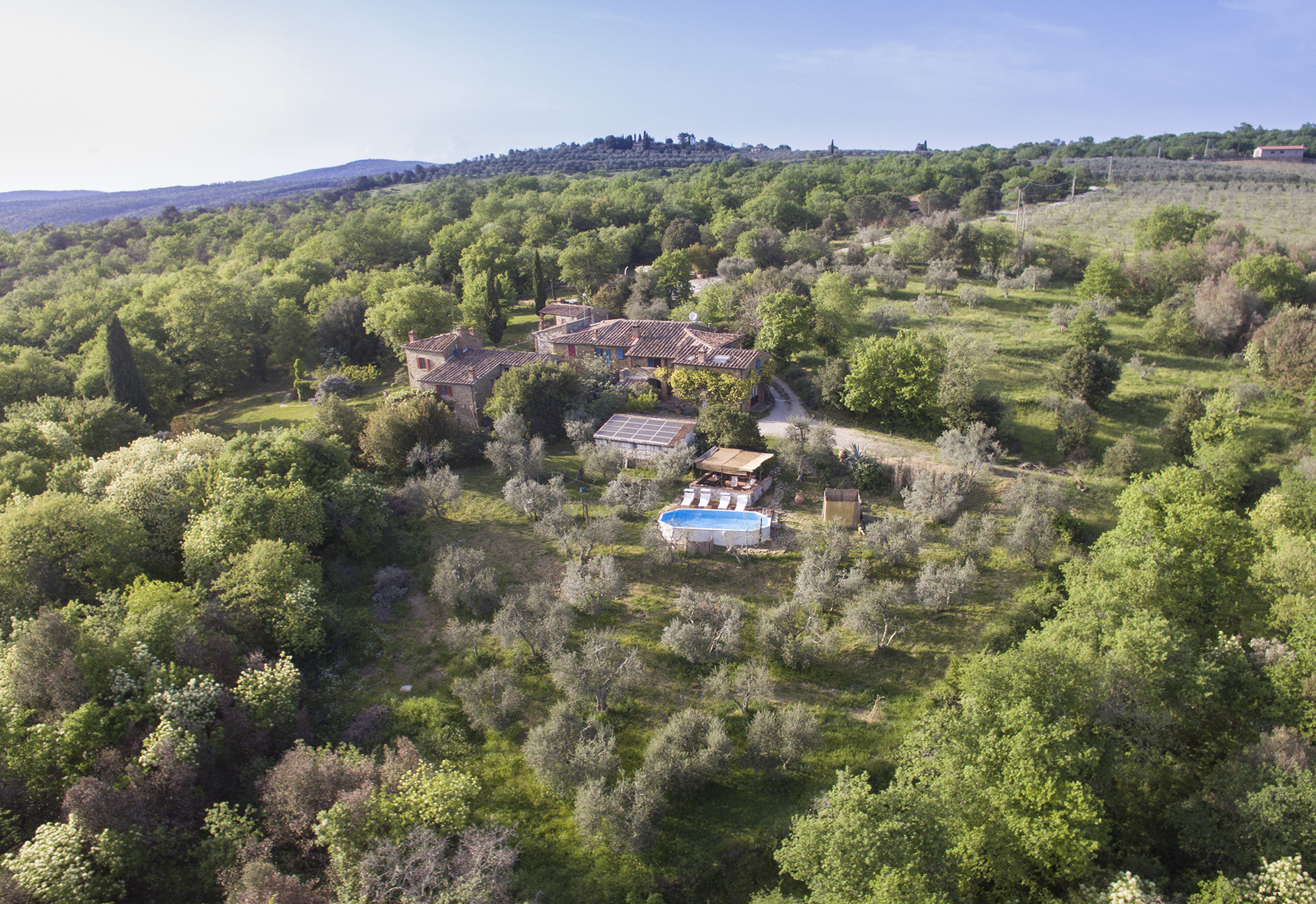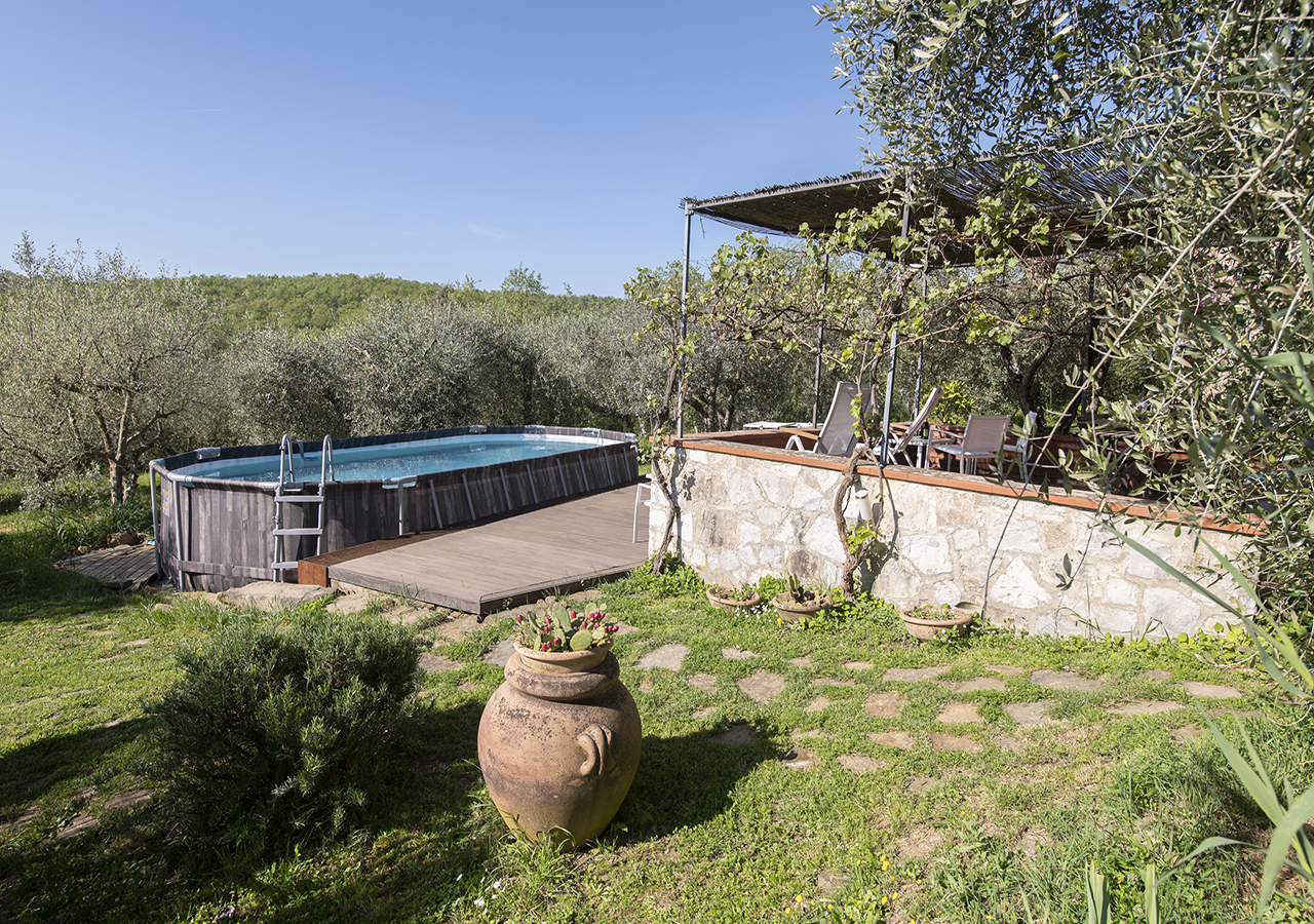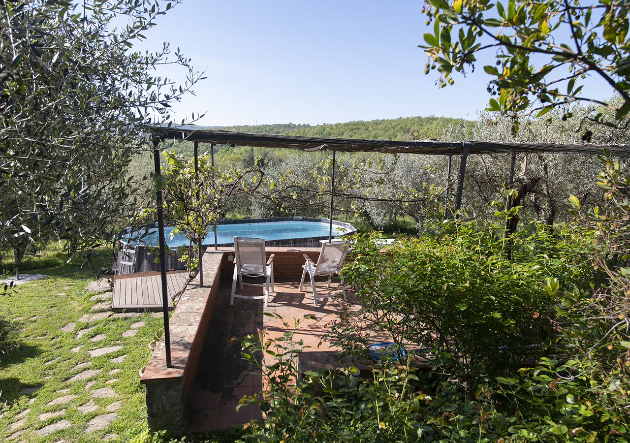 Dal solarium accanto alla piscina in mezzo agli olivi, si puo’ ammirare il panorama sulle colline Senesi e sul Borgo Medioevale di Rigomagno….tutto questo caratterizza la vacanza ideale per coppie o famiglie che vogliono rilassarsi.