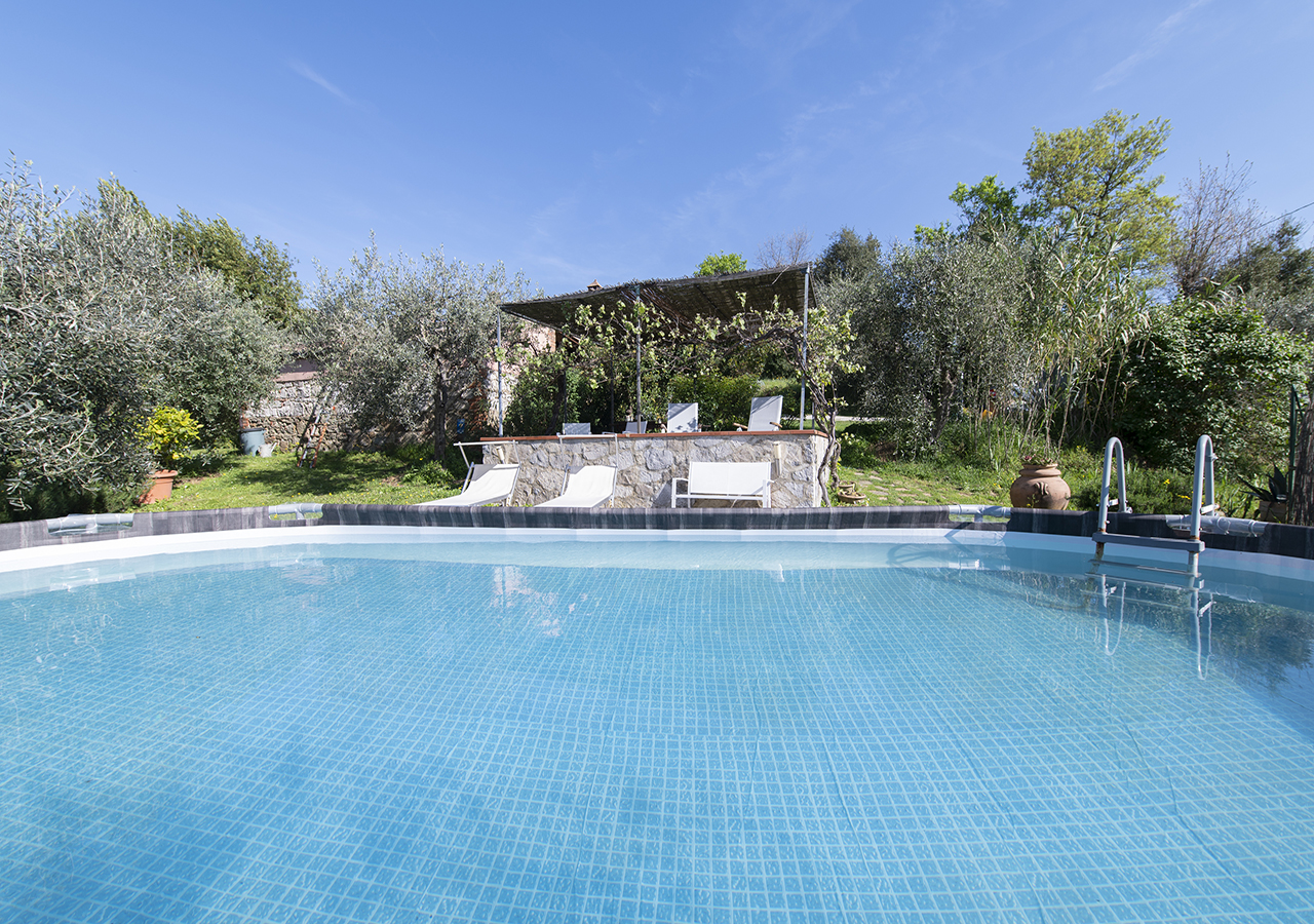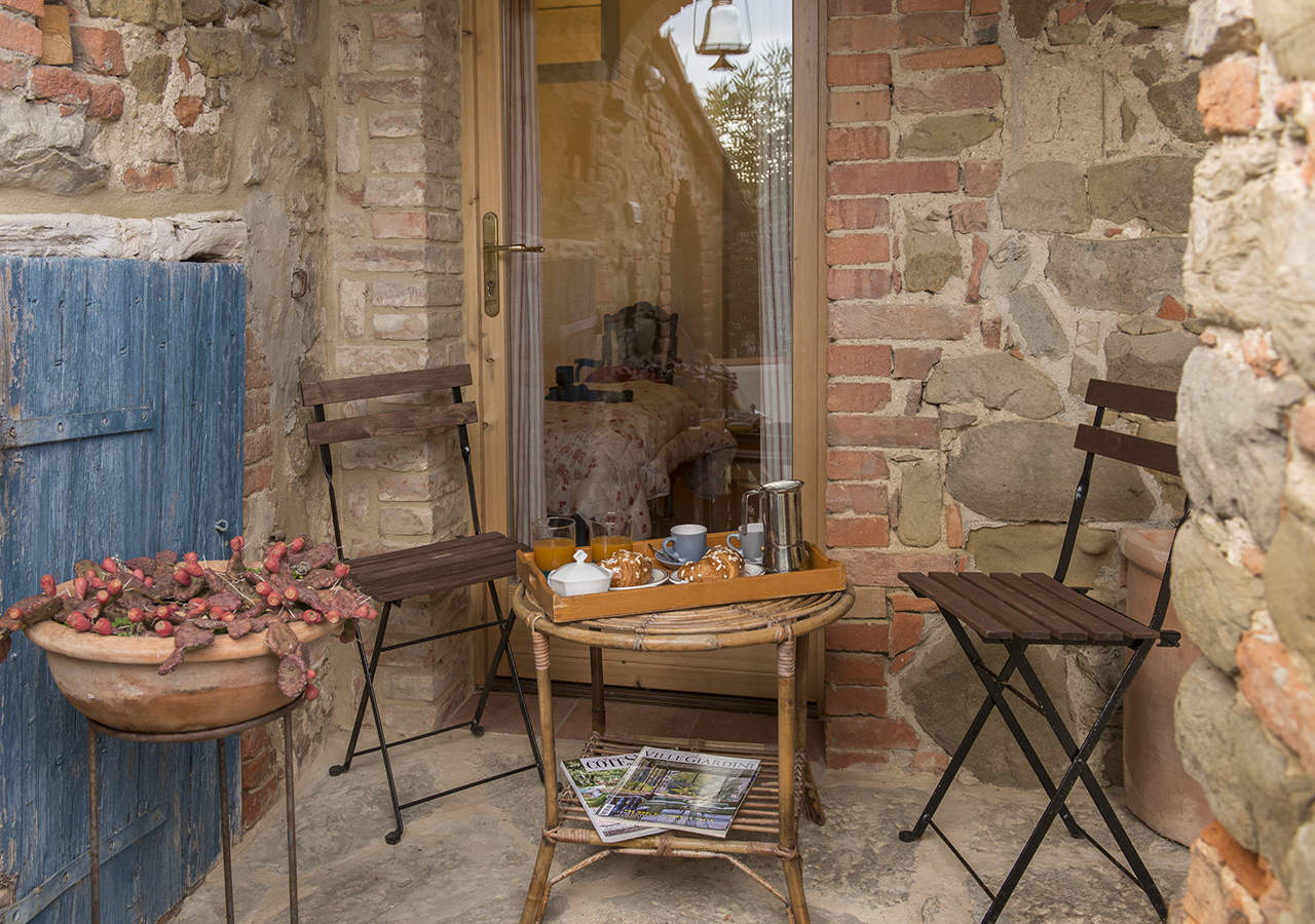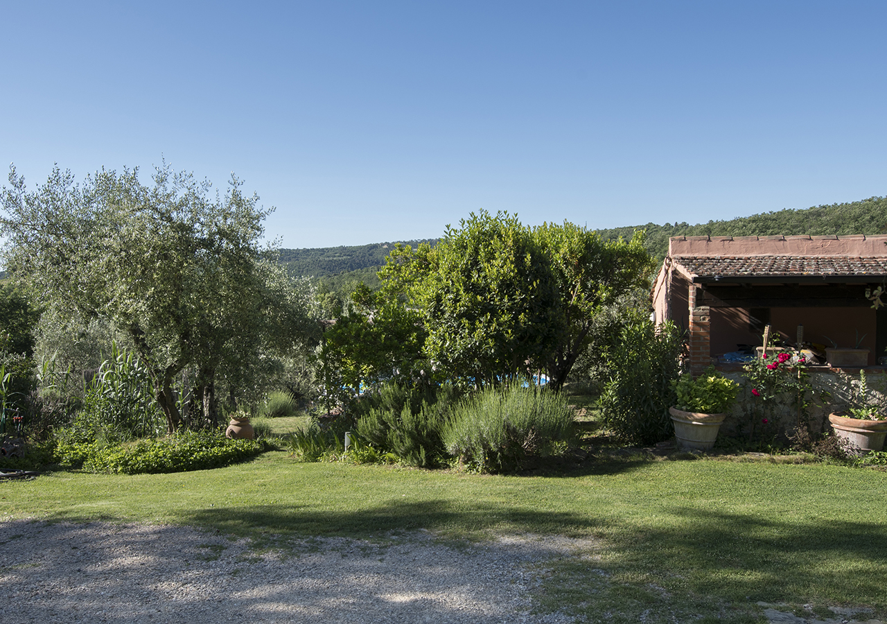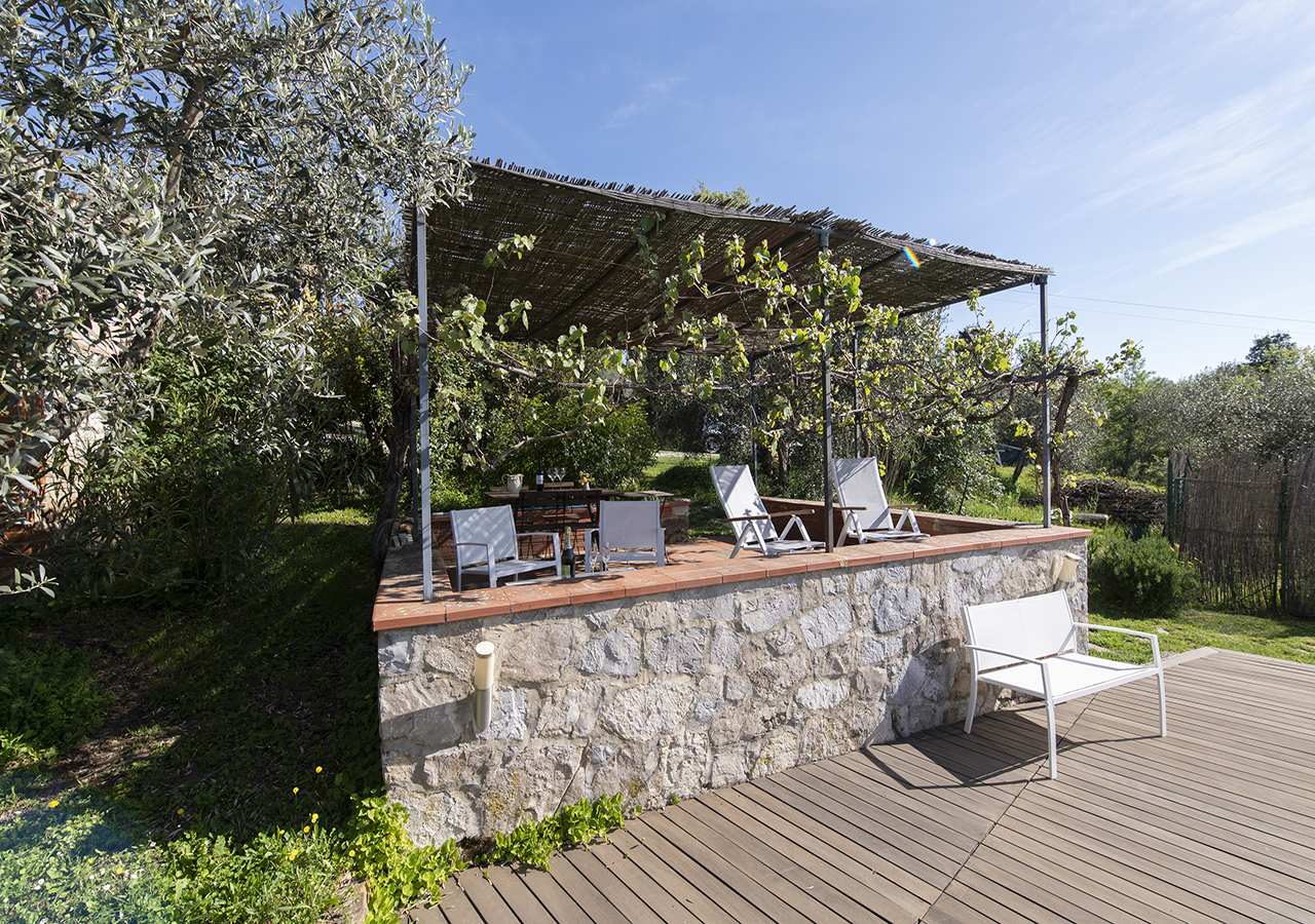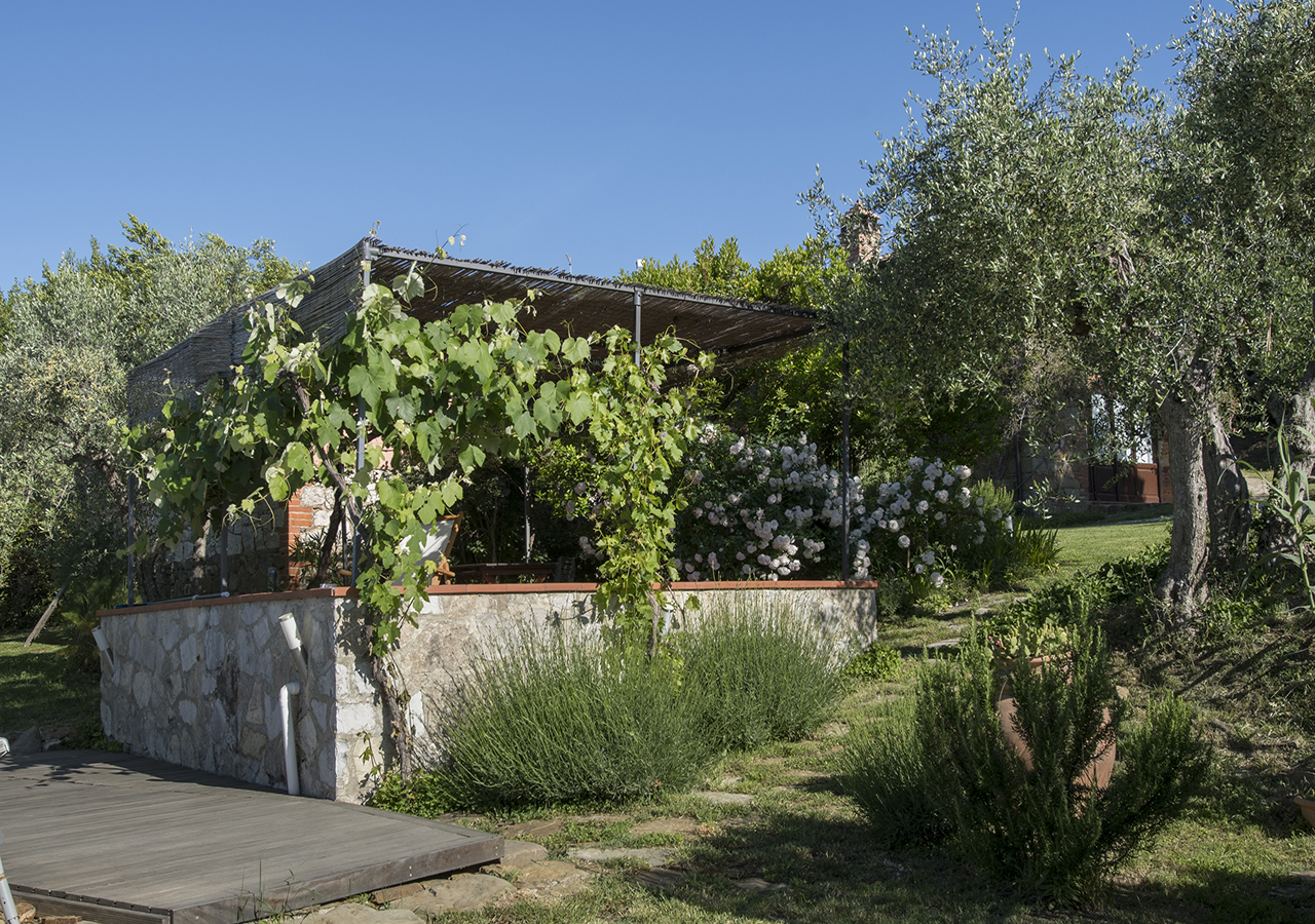 Il casale in pietra ha conservato le sue caratteristiche originali, come il tetto con gli antichi coppi, il vecchio forno, gli archi con mattoni a vista e il giardino con i vasi in cotto fatti a mano e le piante ornamentali rendono questo posto incantevole.