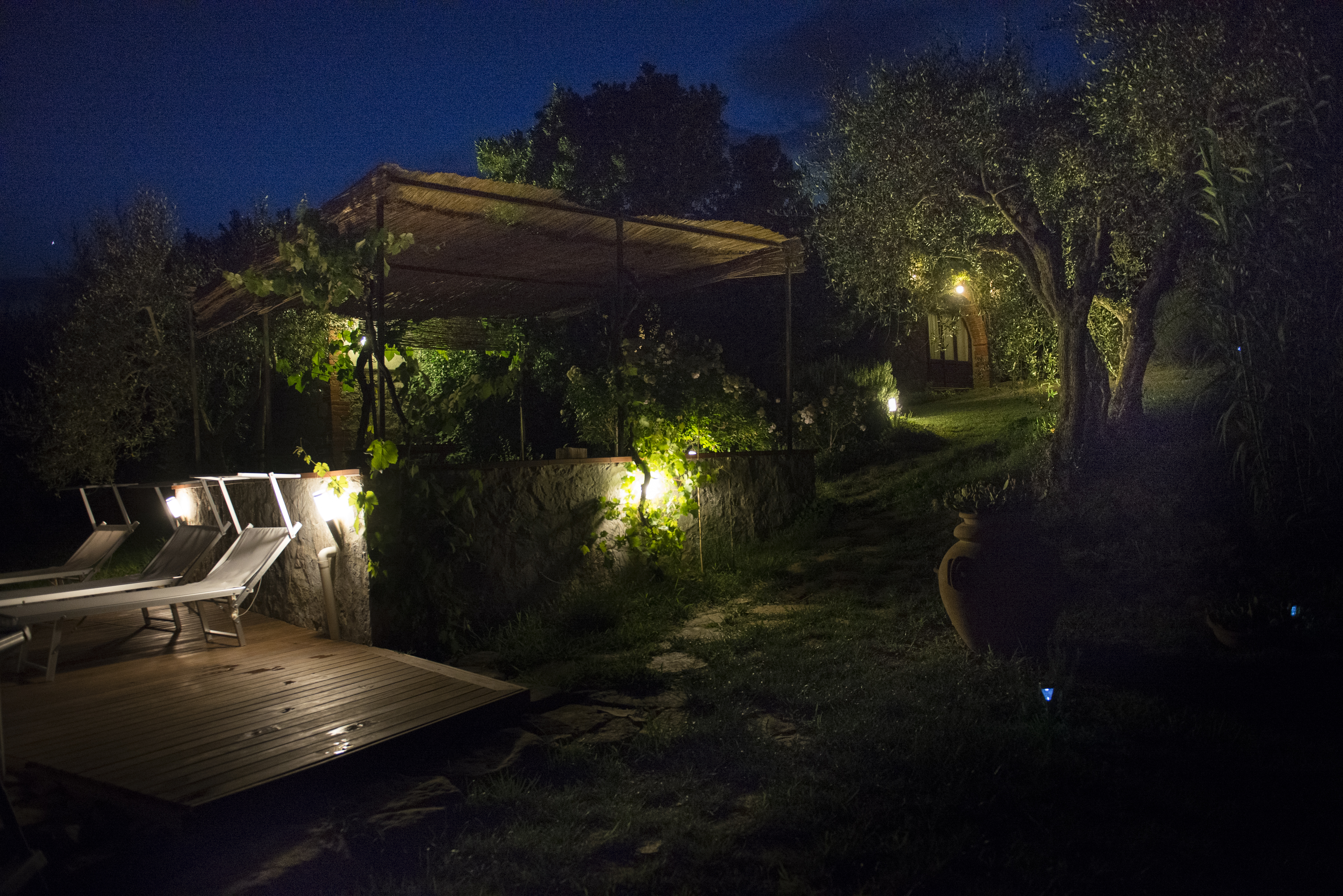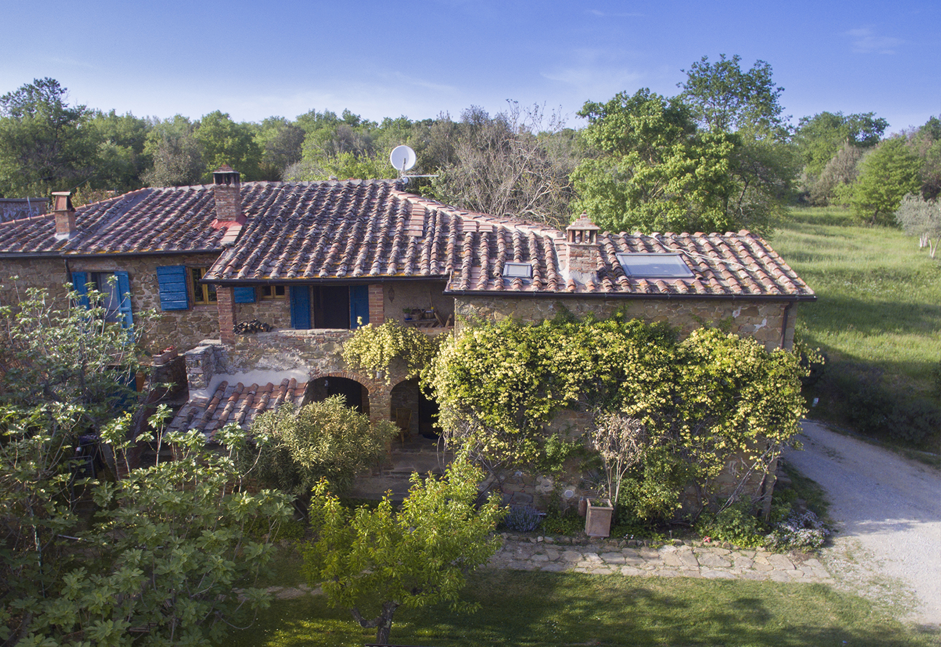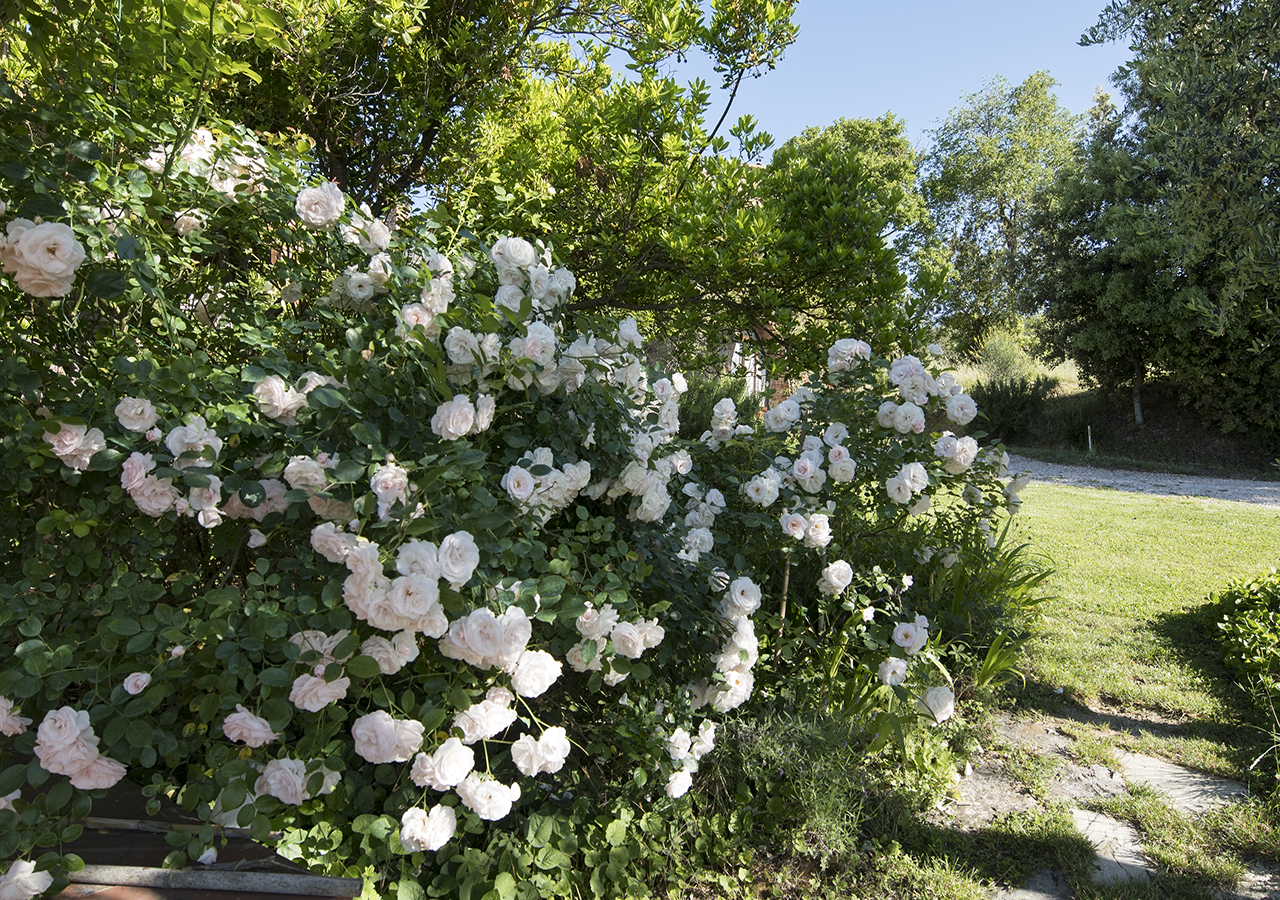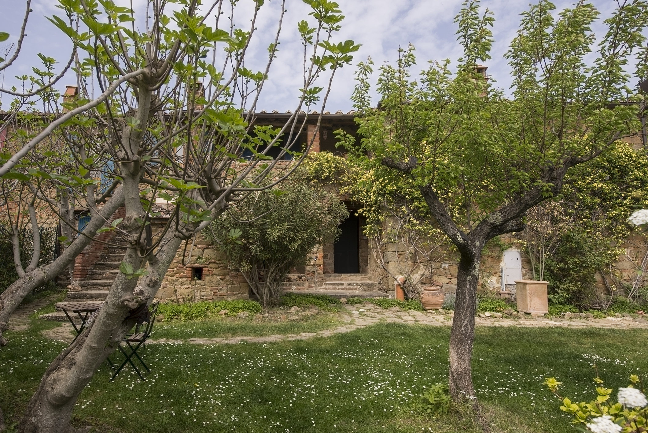 Il casale in pietra ha conservato le sue caratteristiche originali, come il tetto con gli antichi coppi, il vecchio forno, gli archi con mattoni a vista e il giardino con i vasi in cotto fatti a mano e le piante ornamentali rendono questo posto incantevole.