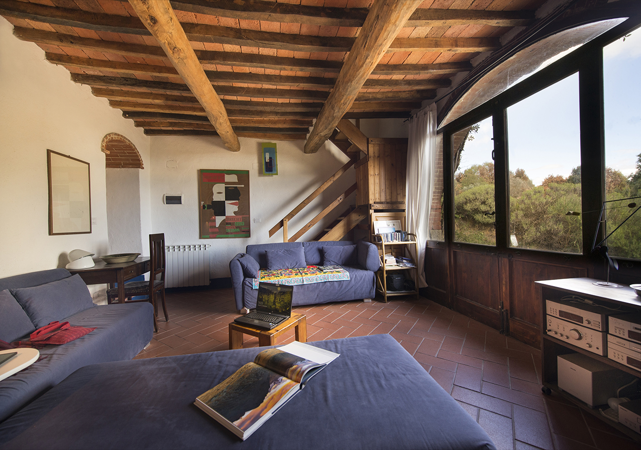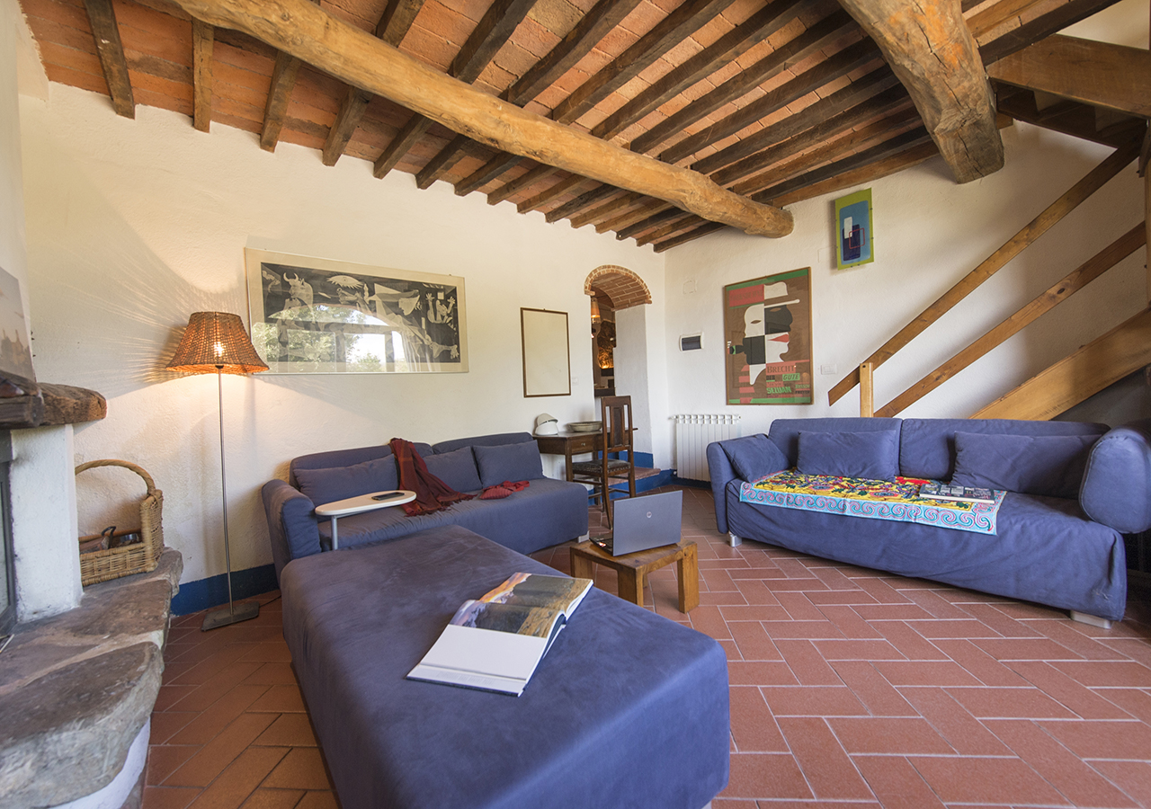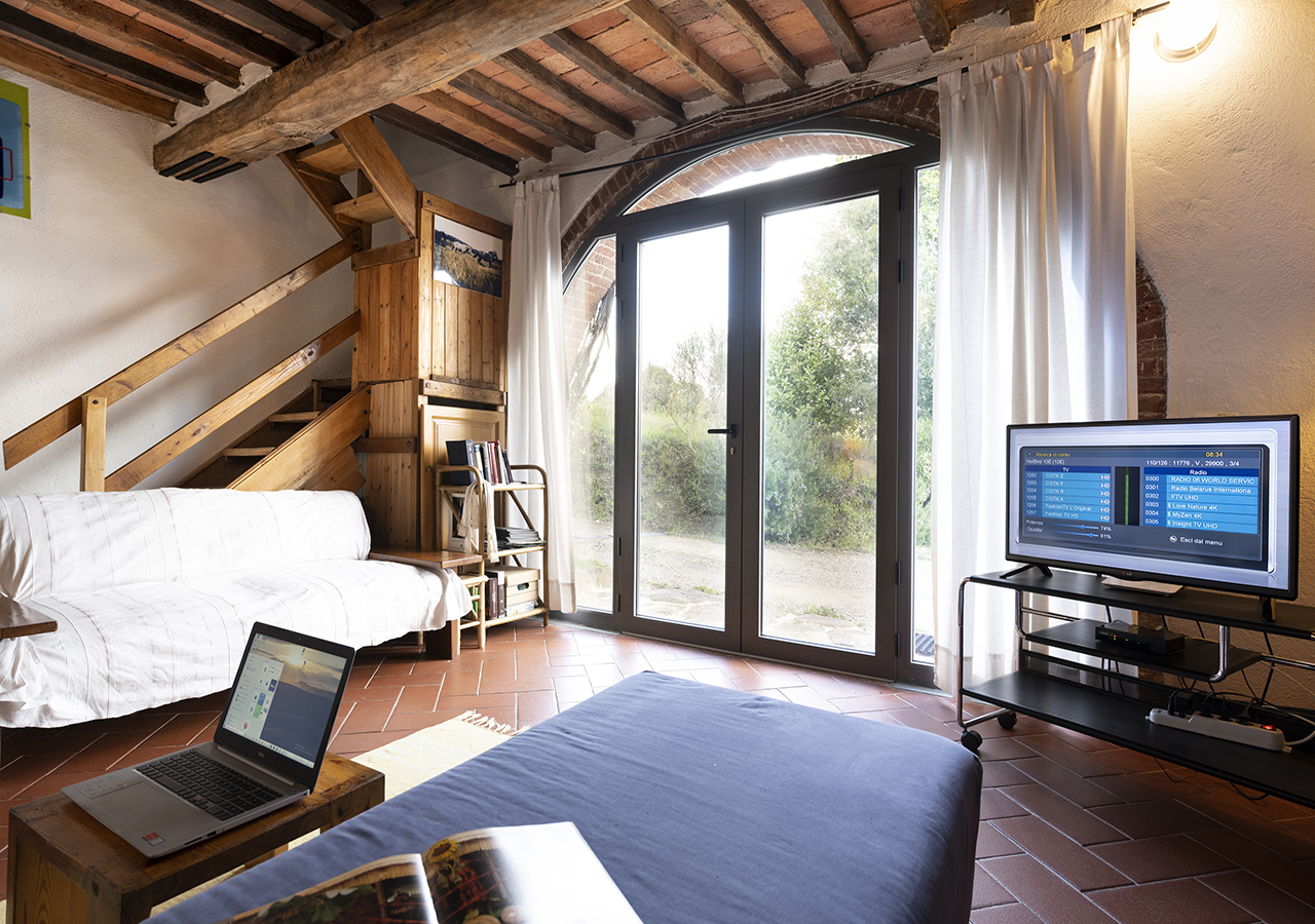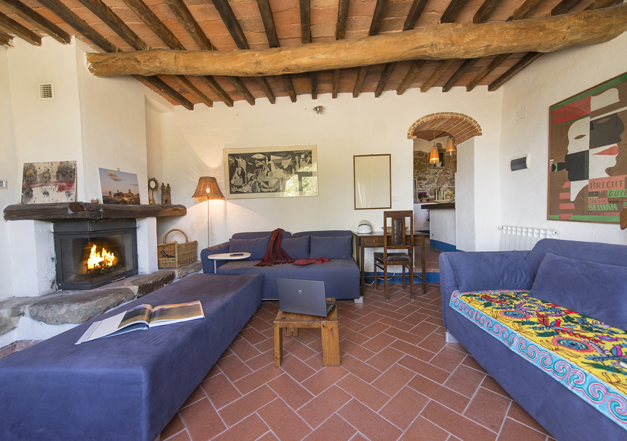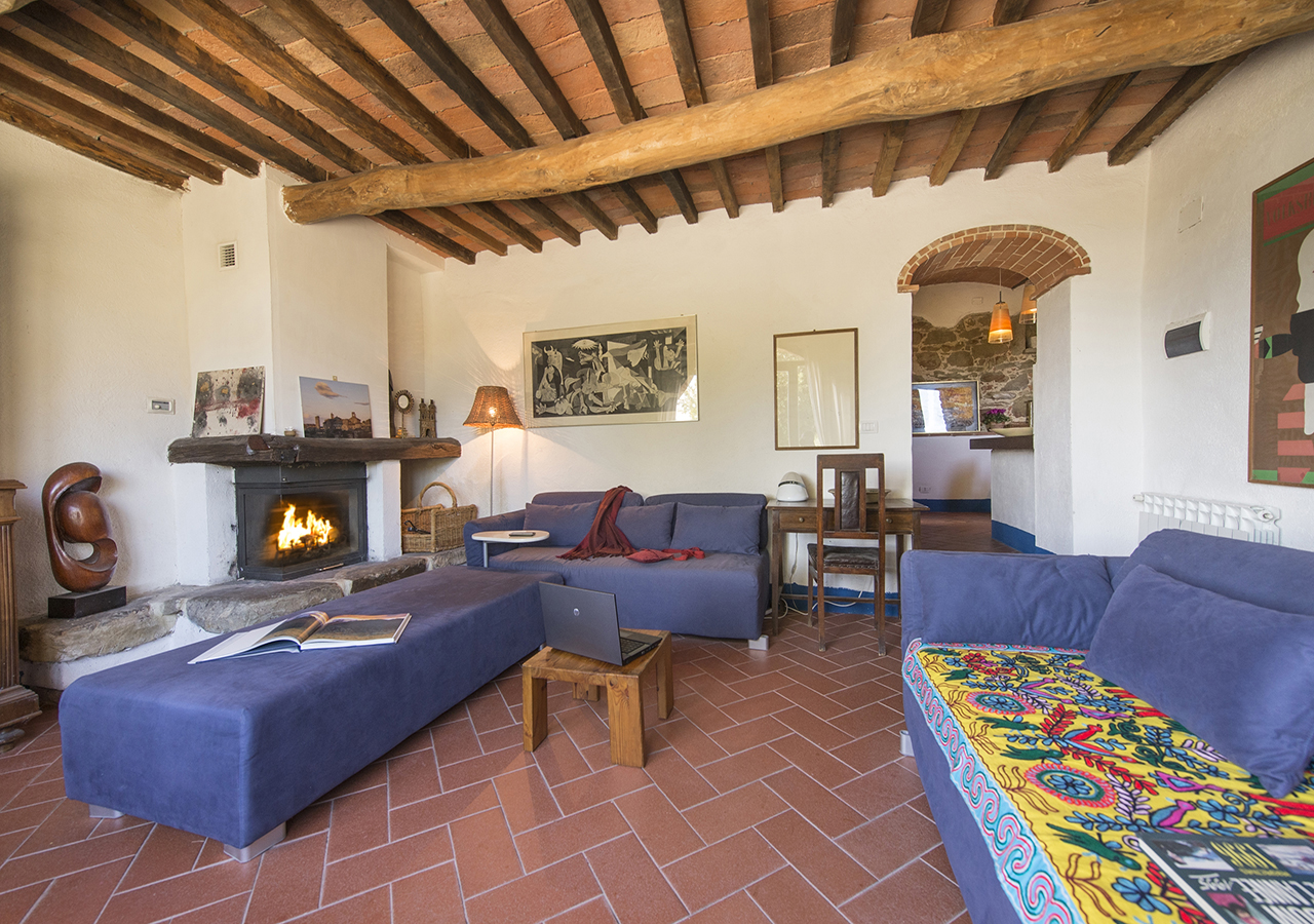 Il soggiorno è grande circa 25 mq con il suo portone ad arco è molto luminoso e ha la vista sul giardino, è dotato di TV satellitare, camino e ampi divani.