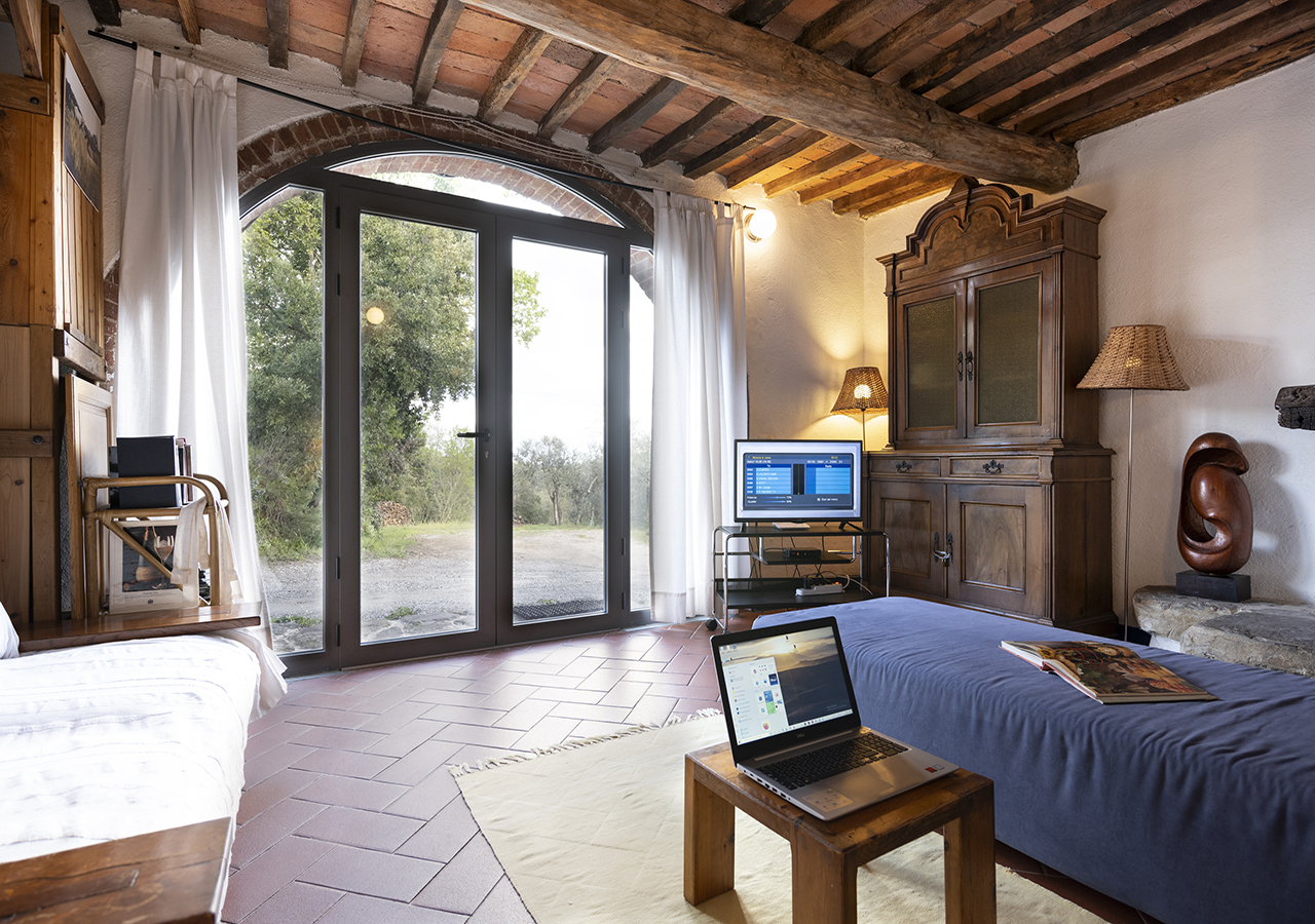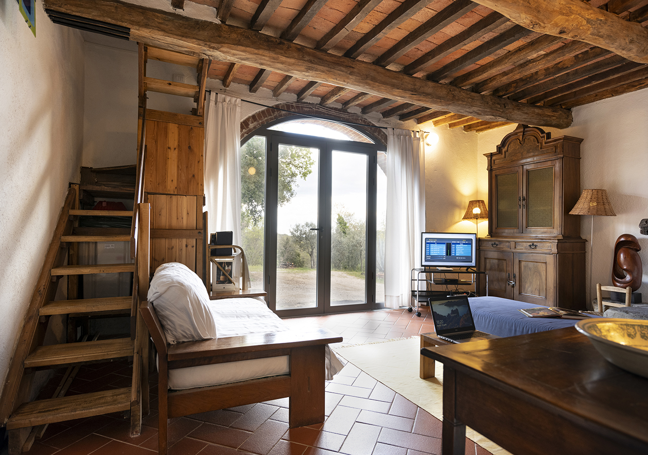 La stanza Olivo è grande circa 20 mq, il letto matrimoniale è di 160cm x 200 cm, divano letto per una persona,