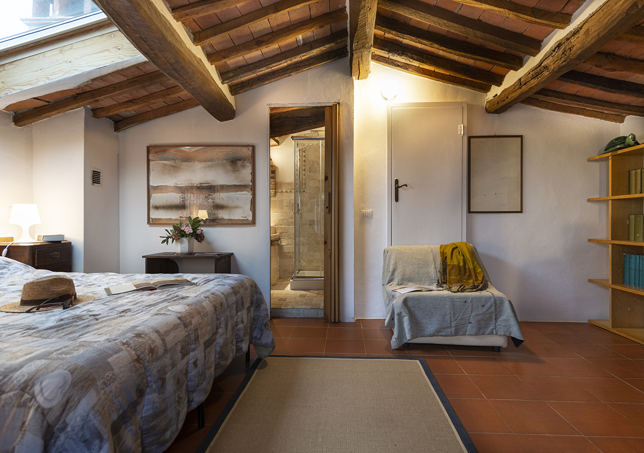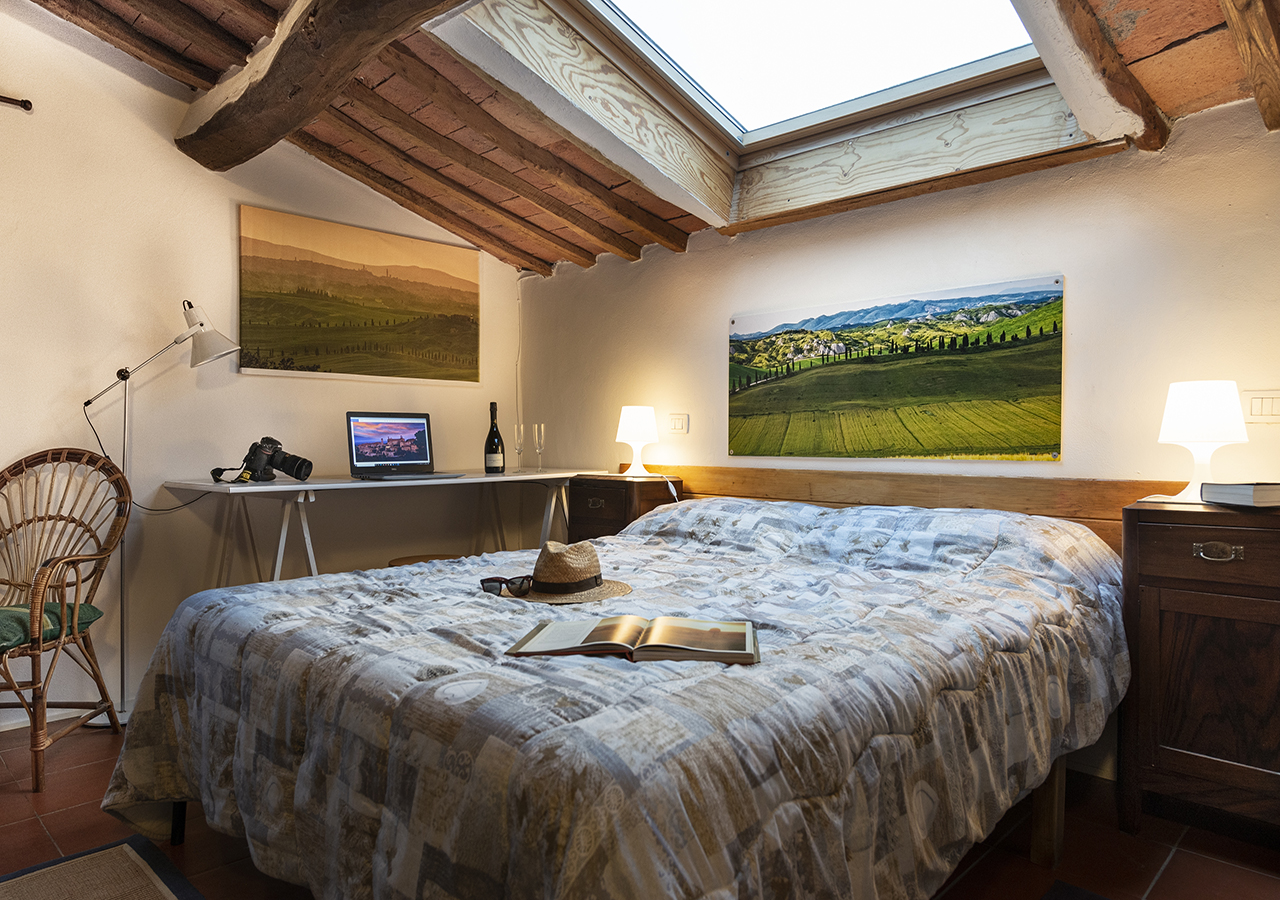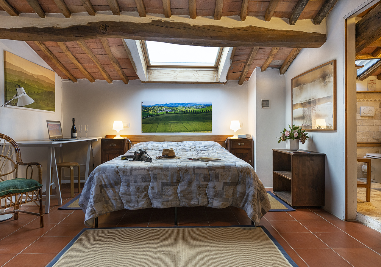 La stanza Ginestra è grande circa 15 mq, il letto matrimoniale è di 160cm x 190 cm,